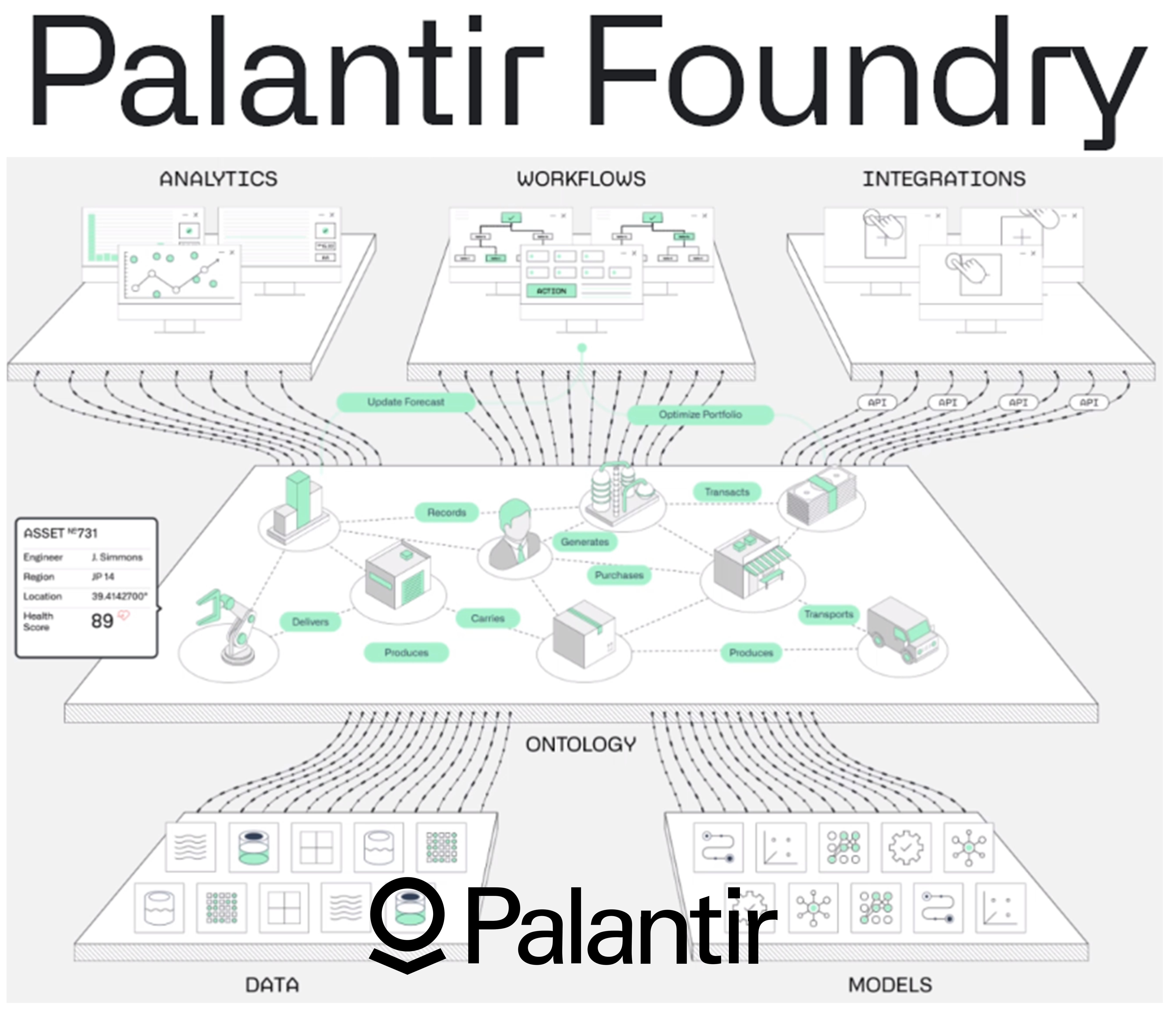 Palantir Foundry offers an integrated suite of capabilities for analysis, collaboration, and ops. Ontology is the heart of Foundry, integrating the semantic, kinetic, and dynamic elements of your business to harmonize and automate decision-making in complex settings. © Palantir Technologies